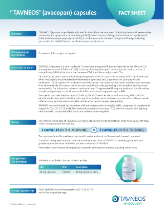 To access key insights about TAVNEOS, download the fact sheet for healthcare professionals below.