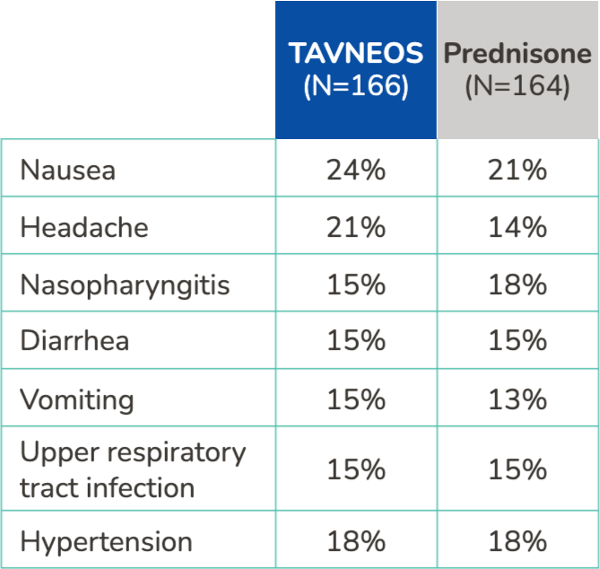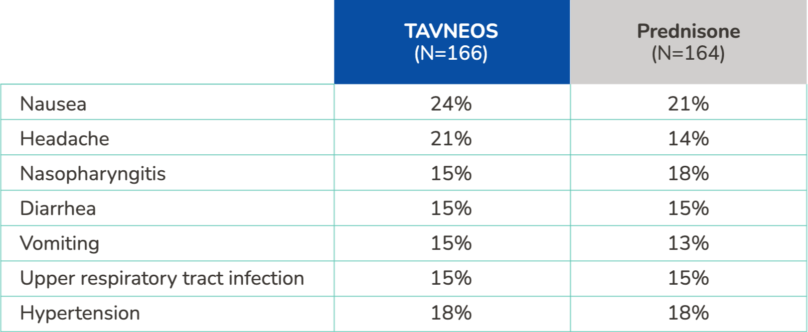 Most common (≥15%) adverse reactions observed in PrTAVNEOS® patients